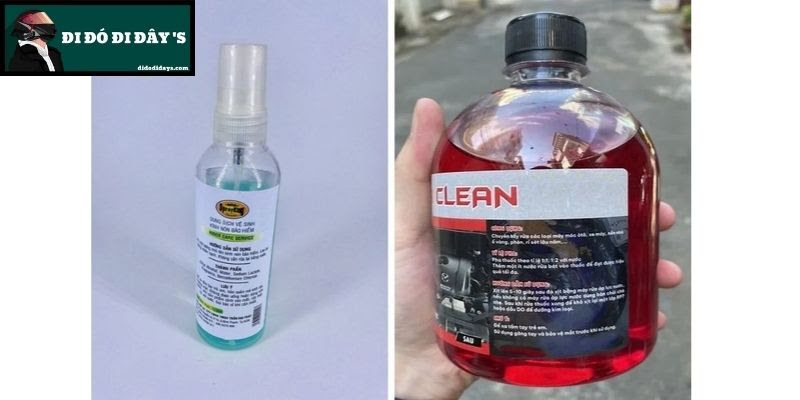 - Bước 1: Mua chai dung dịch chuyên dụng cho nón bảo ở các cửa hàng phụ kiện xe máy.